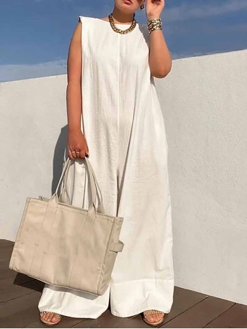 Solid Color Sleeveless Wide Leg Jumpsuits